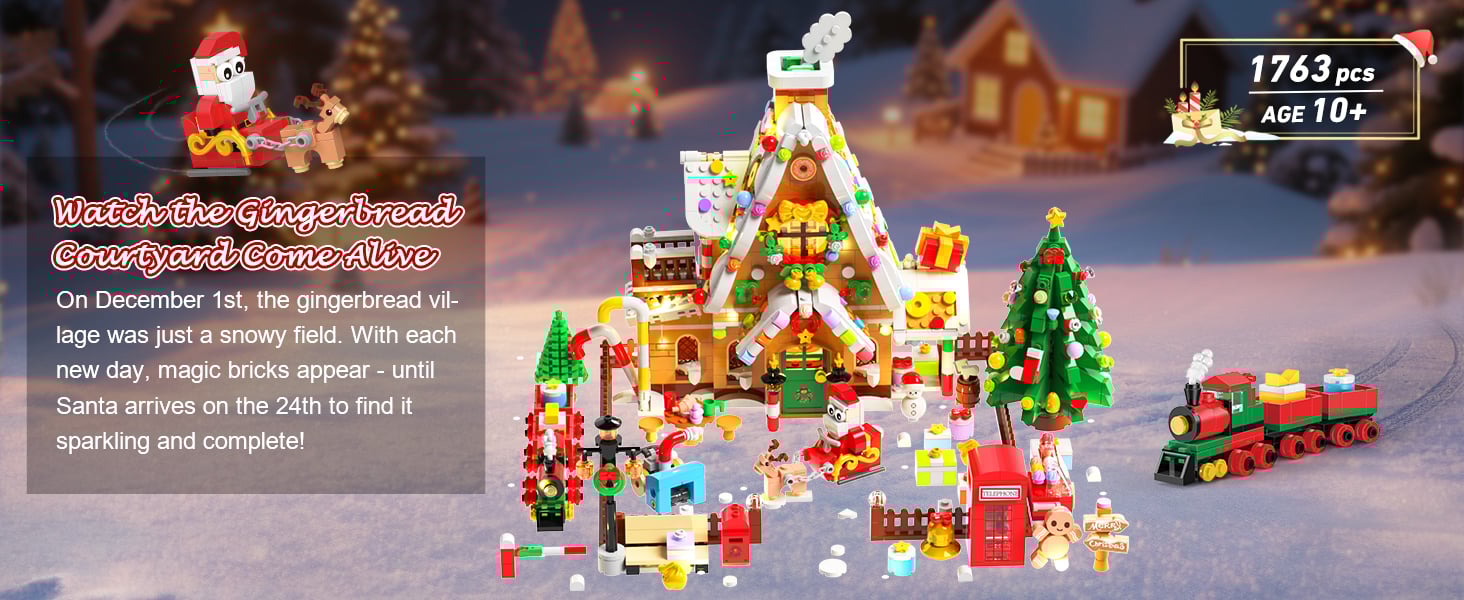 Unwrap daily joy from December 1st to 24th: open one numbered door each day to find a tiny brick bag, then build piece by piece until Christmas Eve—you’ll create a handmade, dazzling gingerbread courtyard that turns the holiday countdown into a playful, rewarding experience.